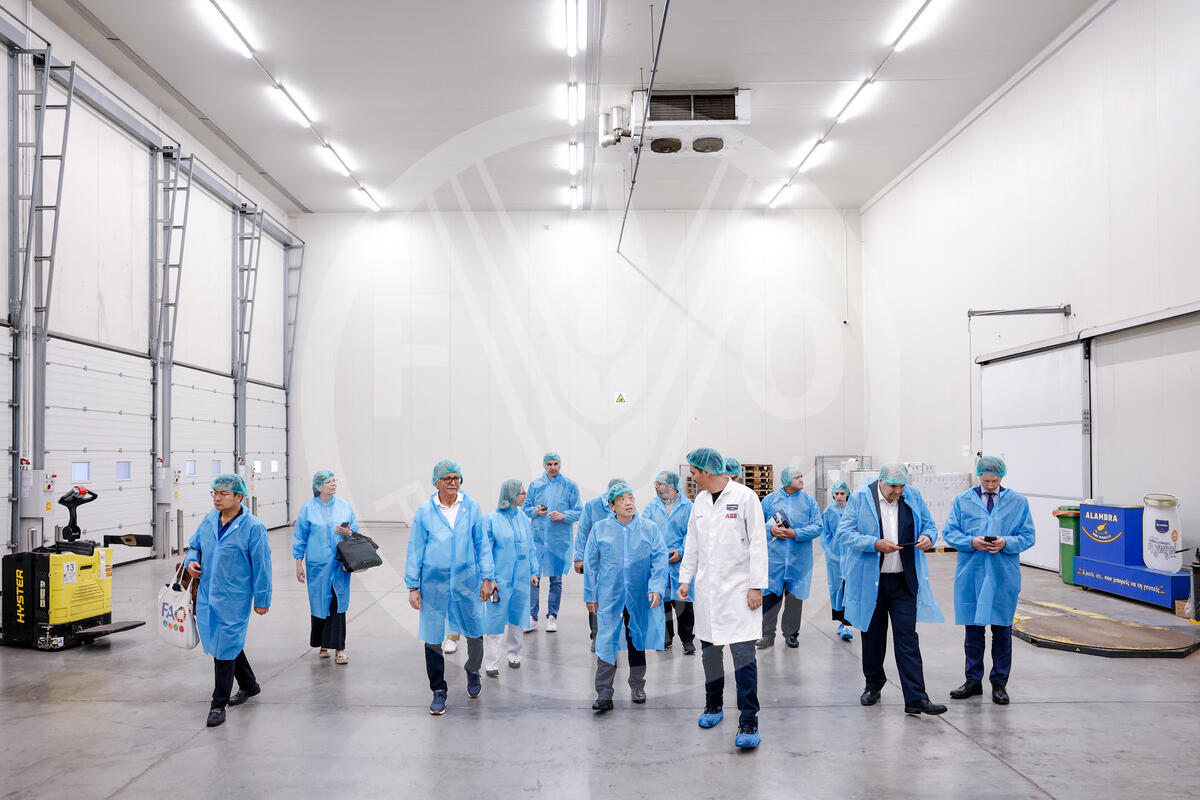 05 June 2025. Aradippou, Cyprus. FAO Director-General QU Dongyu (C) visits Alambra Petrou Bros Dairy Products with his delegation.