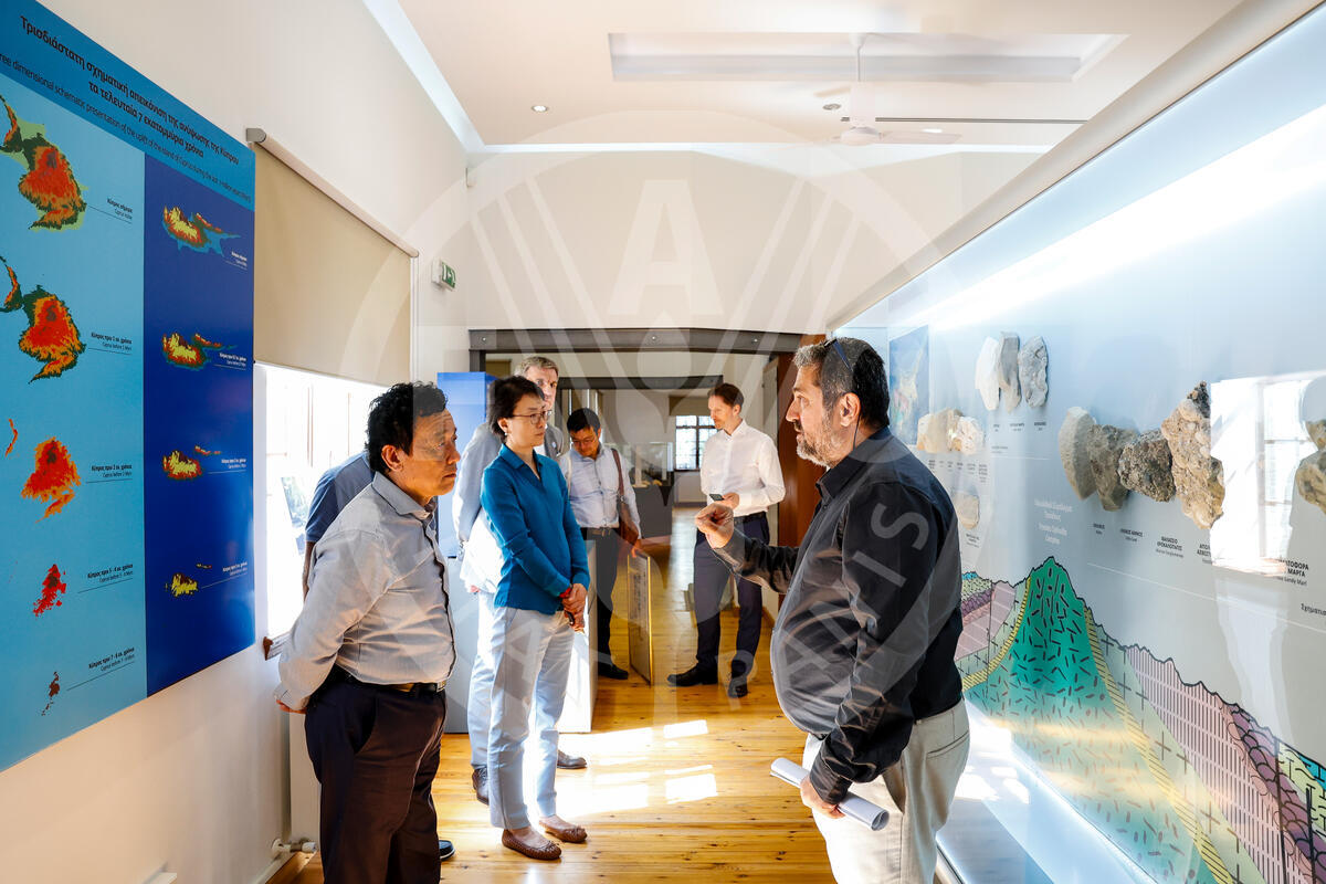 06 June 2025. Troodos mountain, Cyprus. FAO Director-General QU Dongyu (L) and his delegation visits UNESCO Global Geopark accompanied by Efthymios Tsiolakis (R), Geoscientist of Troodos UNESCO Global Geopark, Senior Geologist, Geological Survey Department of Cyprus (GSD).