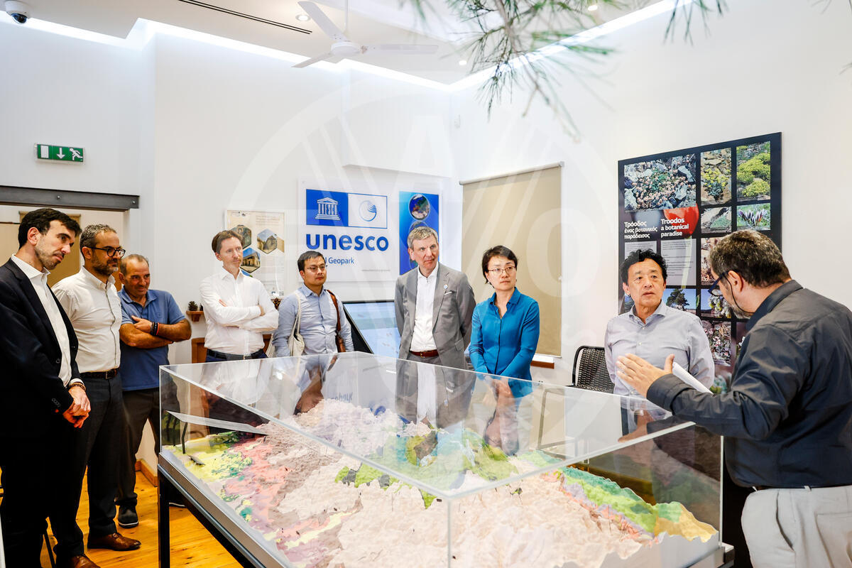 06 June 2025. Troodos mountain, Cyprus. FAO Director-General QU Dongyu (Second from right) and his delegation visits UNESCO Global Geopark accompanied by Efthymios Tsiolakis (First from right), Geoscientist of Troodos UNESCO Global Geopark, Senior Geologist, Geological Survey Department of Cyprus (GSD).