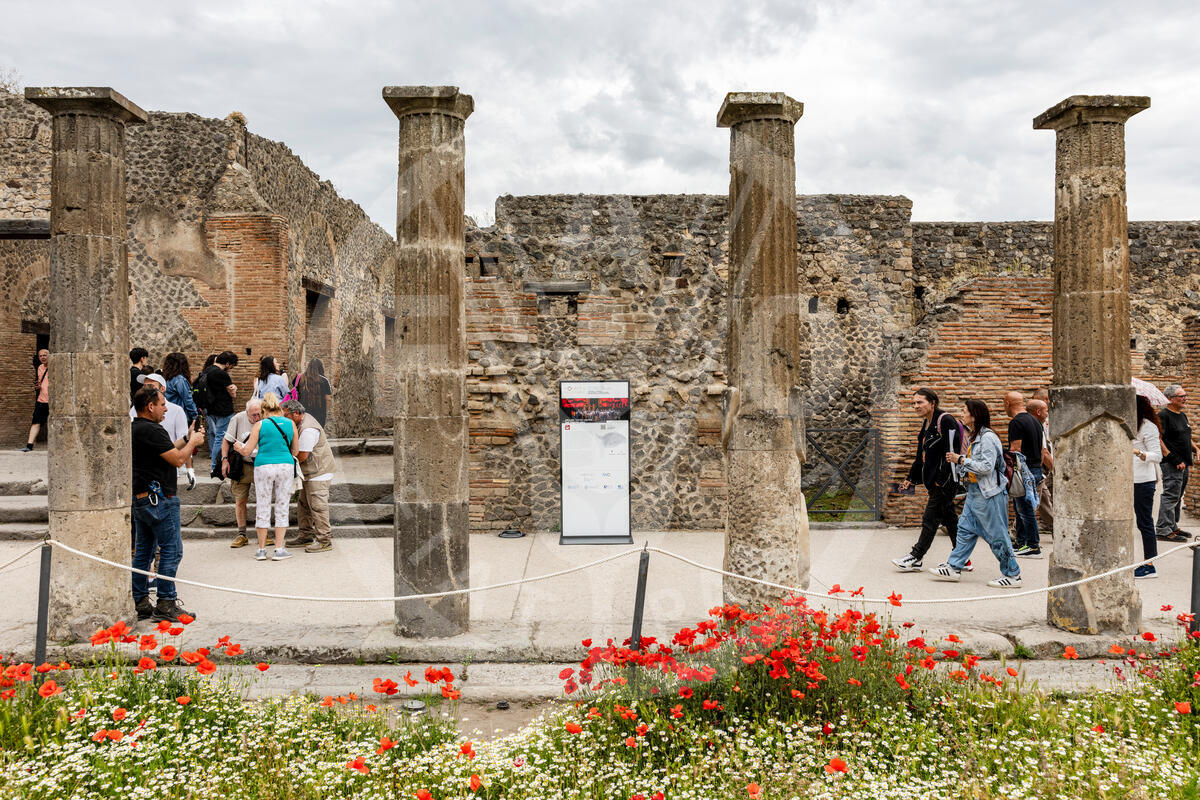 15 May 2025. Pompeii, Italy. Workers install totems in Pompeii site, built as part of the “Sustainable Pompeii” project, created by FAO in collaboration with the Archaeological Park of Pompeii and the Italian Ministry of Foreign Affairs and International Cooperation (MAECI).