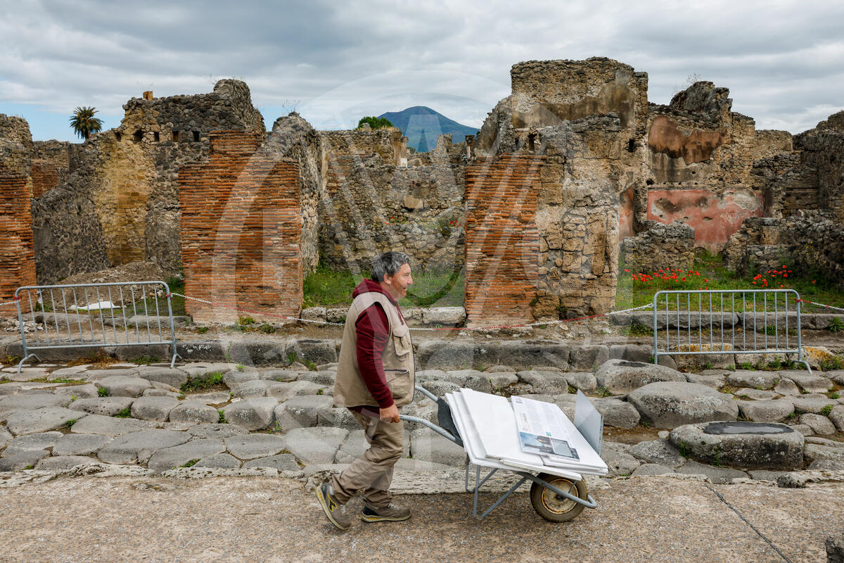 15 May 2025. Pompeii, Italy. Workers transport the totems at the Pompeii site, built as part of the “Sustainable Pompeii” project, created by FAO in collaboration with the Archaeological Park of Pompeii and the Italian Ministry of Foreign Affairs and International Cooperation (MAECI).