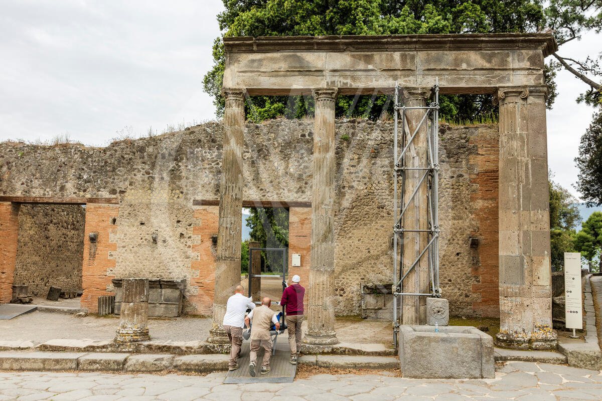 15 May 2025. Pompeii, Italy. Workers transport a totem at the Pompeii site, built as part of the “Sustainable Pompeii” project, created by FAO in collaboration with the Archaeological Park of Pompeii and the Italian Ministry of Foreign Affairs and International Cooperation (MAECI).