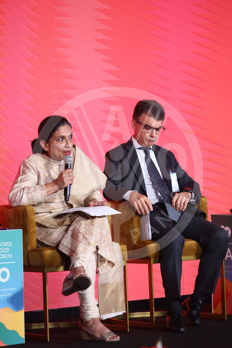 15 October 2024. Plenary, FAO Headquarters, Rome, Italy. Shobha Shetty, the World Bank’s new Global Director, Agriculture and Food Global Practice and Paolo Lombardo, Director of CDP’s International Cooperation and Development Finance.
