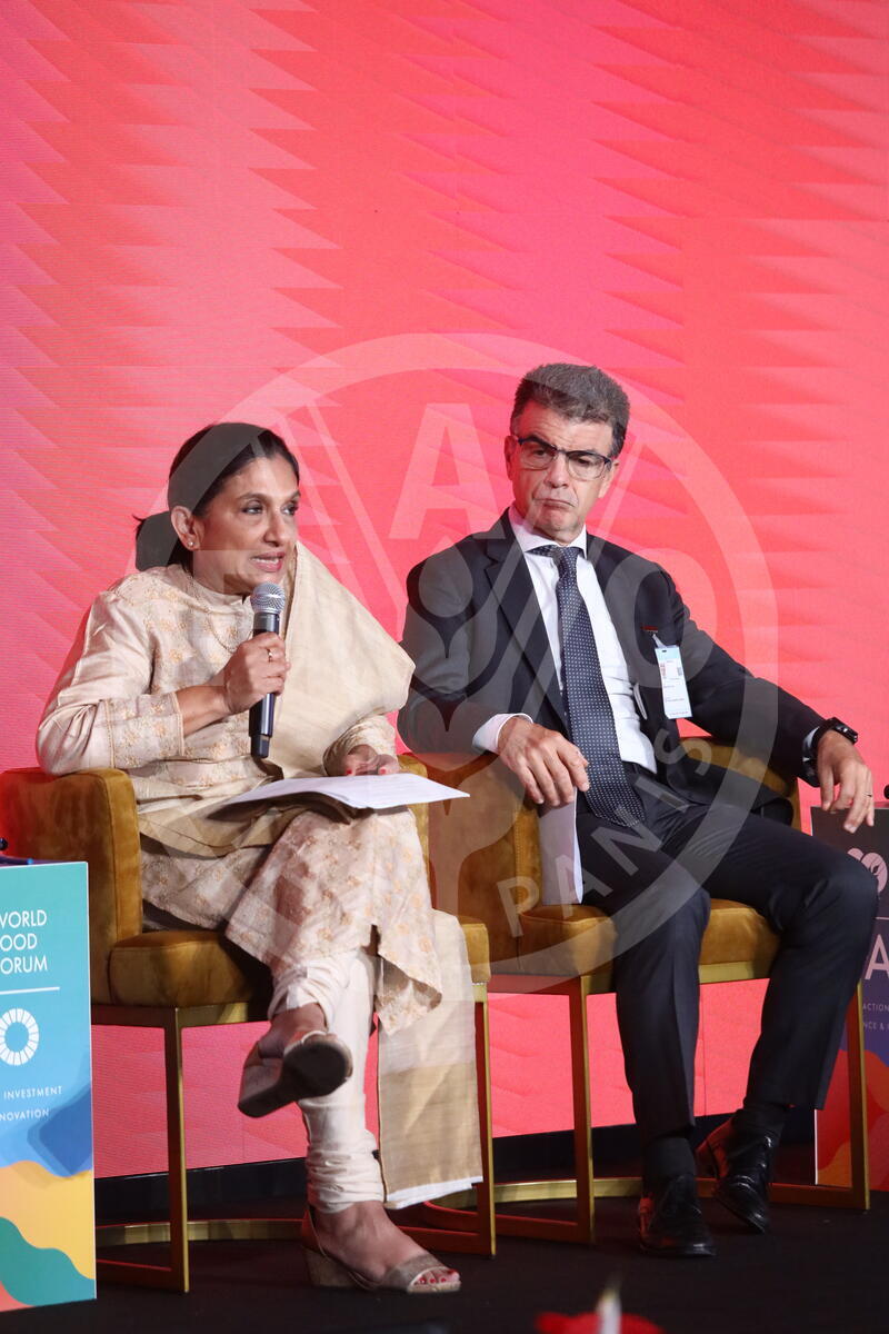 15 October 2024. Plenary, FAO Headquarters, Rome, Italy. Shobha Shetty, the World Bank’s new Global Director, Agriculture and Food Global Practice and Paolo Lombardo, Director of CDP’s International Cooperation and Development Finance.