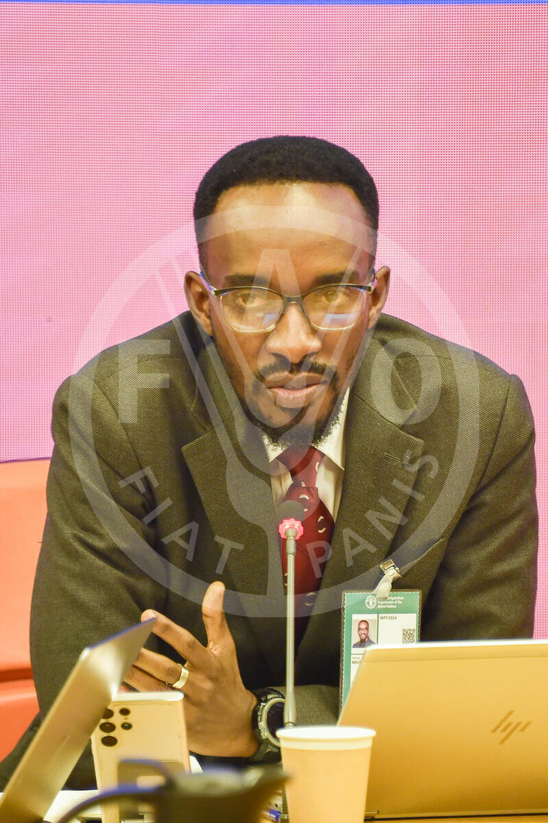 15 October 2024. Ethiopia Room, FAO Headquarters, Rome, Italy. Seth Charles Mkisi, Agripreneur, Shamba Box Founder and Youth Policy Board Member, moderator at Africa Regional Youth Assembly Workshop.