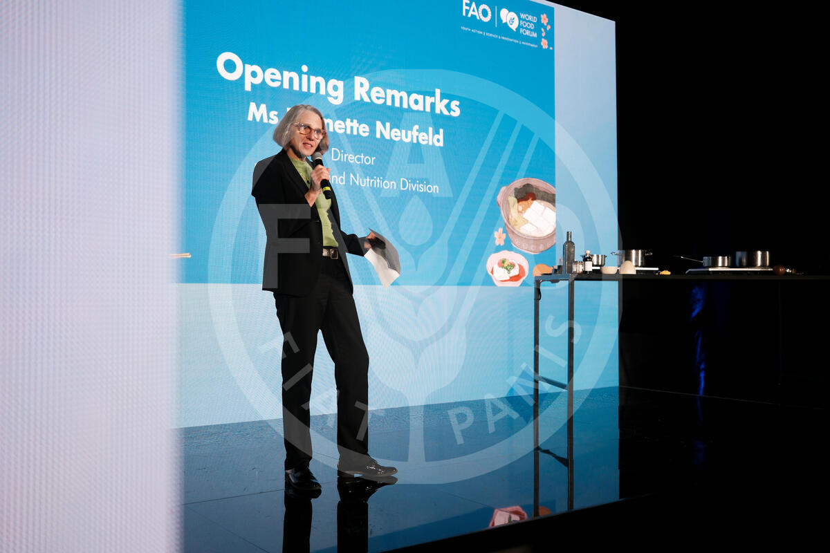 17 October 2024. Sheikh Zayed Centre, FAO Headquarters, Rome, Italy. Lynnette Neufeld, FAO Food and Nutrition Division Director, gives her opening remarks at Culture and Gastronomy: Spotlight on Washoku.