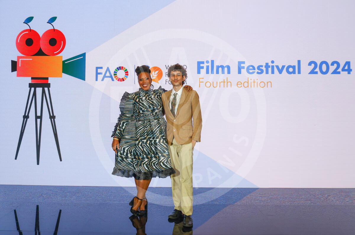 16 October 2024. Sheikh Zayed Centre, FAO Headquarters, Rome, Italy. Rachel and Joao, moderators of World Food Forum Film Festival 2024.