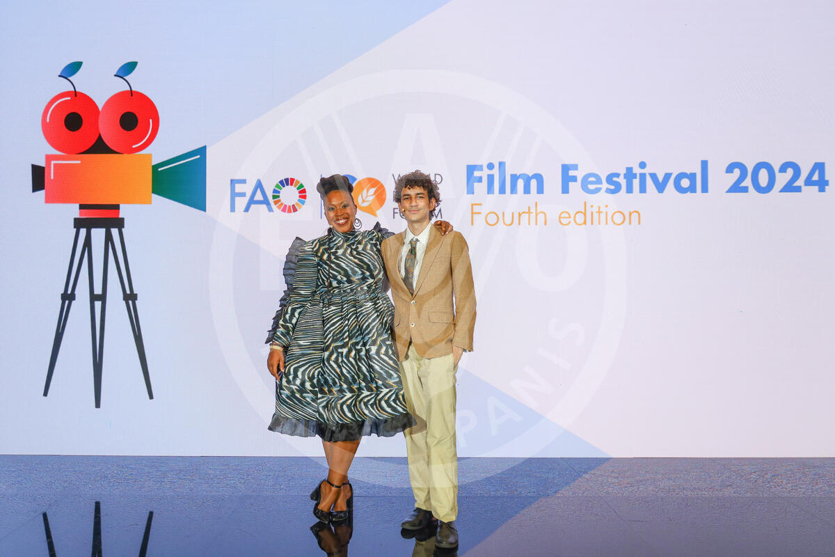 16 October 2024. Sheikh Zayed Centre, FAO Headquarters, Rome, Italy. Rachel and Joao, moderators of World Food Forum Film Festival  2024.