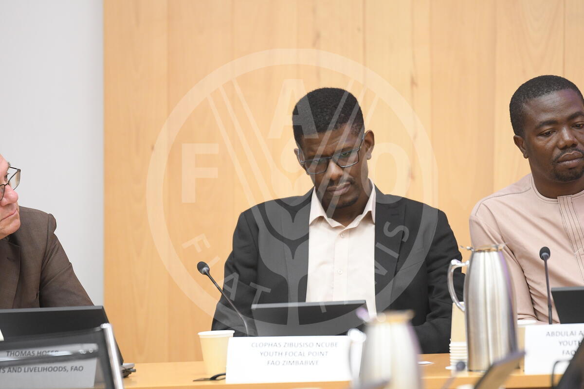 17 October 2024. German Room, FAO Headquarters, Rome, Italy. Clophas Zibusiso Ncube, Youth Focal Point, FAO Zimbawe, at Forest and Farm Champions: Rural Youth Shaping Tomorrow Forest and Farms.