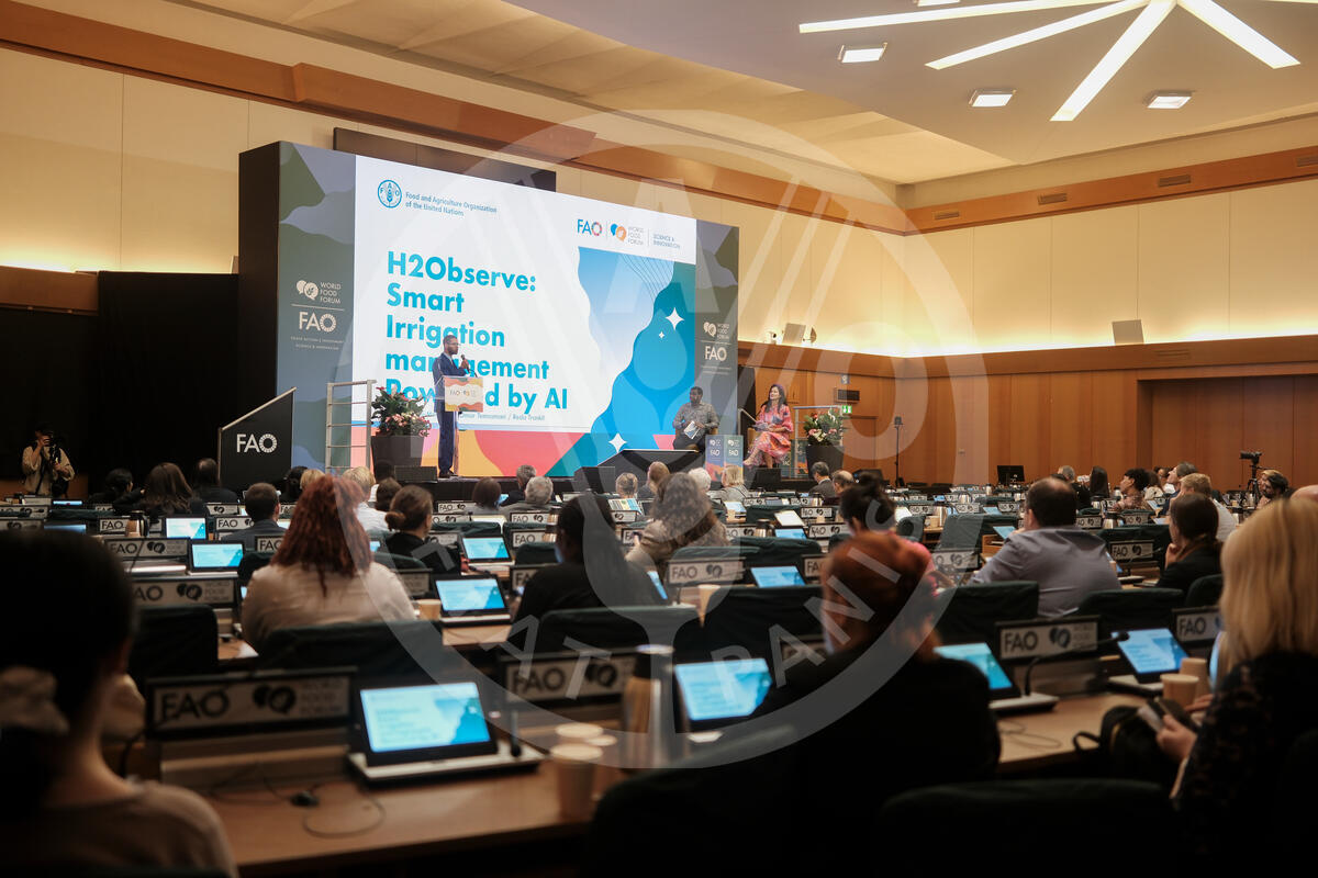 17 October 2024. Green Room, FAO Headquarters, Rome, Italy. Participants showcase innovative projects at the Future of Food Pitch Fest.
