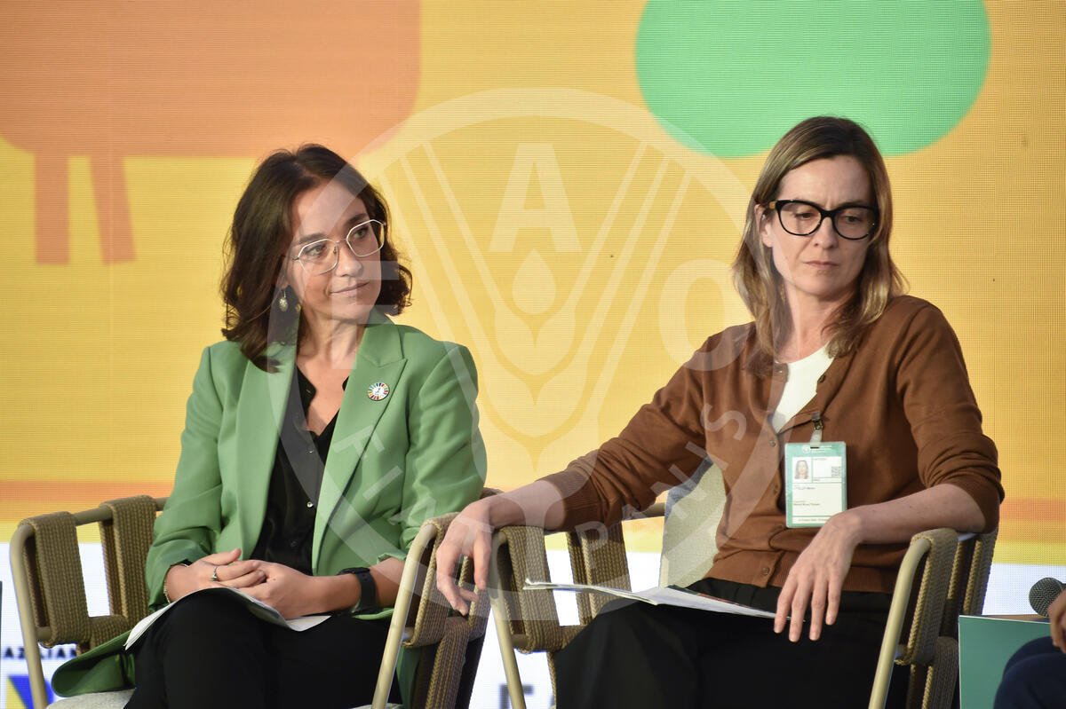 17 October 2024. Farm Venue, FAO Headquarters, Rome, Italy. (L-R) Antonella Cianciotta, Technical Specialist at the International Fund for Agricultural Development (IFAD), and Belén Citoler, Deputy-Director, World Rural Forum (WRF), at the Global Family Farming Forum Closing.