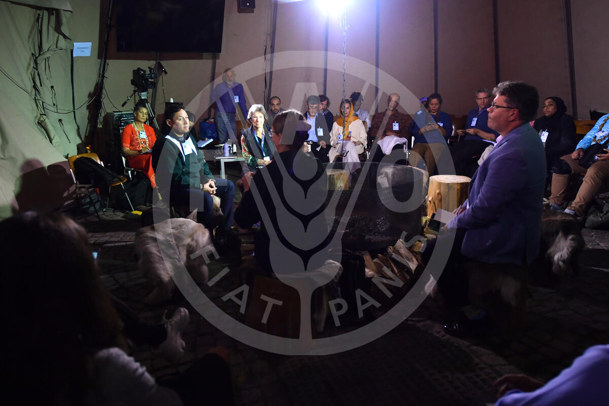 14 October 2024. Indigenous Youth Territory, FAO Headquarters, Rome, Italy. FIREtalk inside the Indigenous tent.