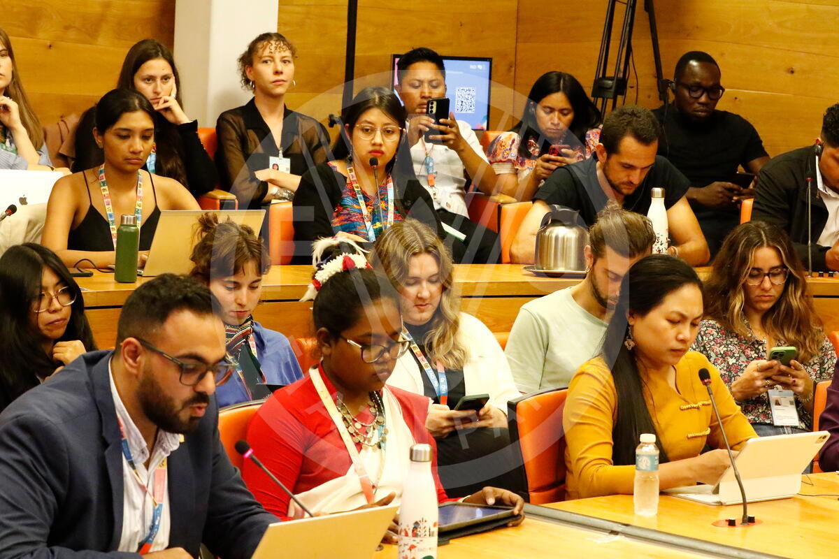 17 October 2024. Ethiopia Room, FAO Headquarters, Rome, Italy. View of attendees at the Indigenous Youth Roundtable.