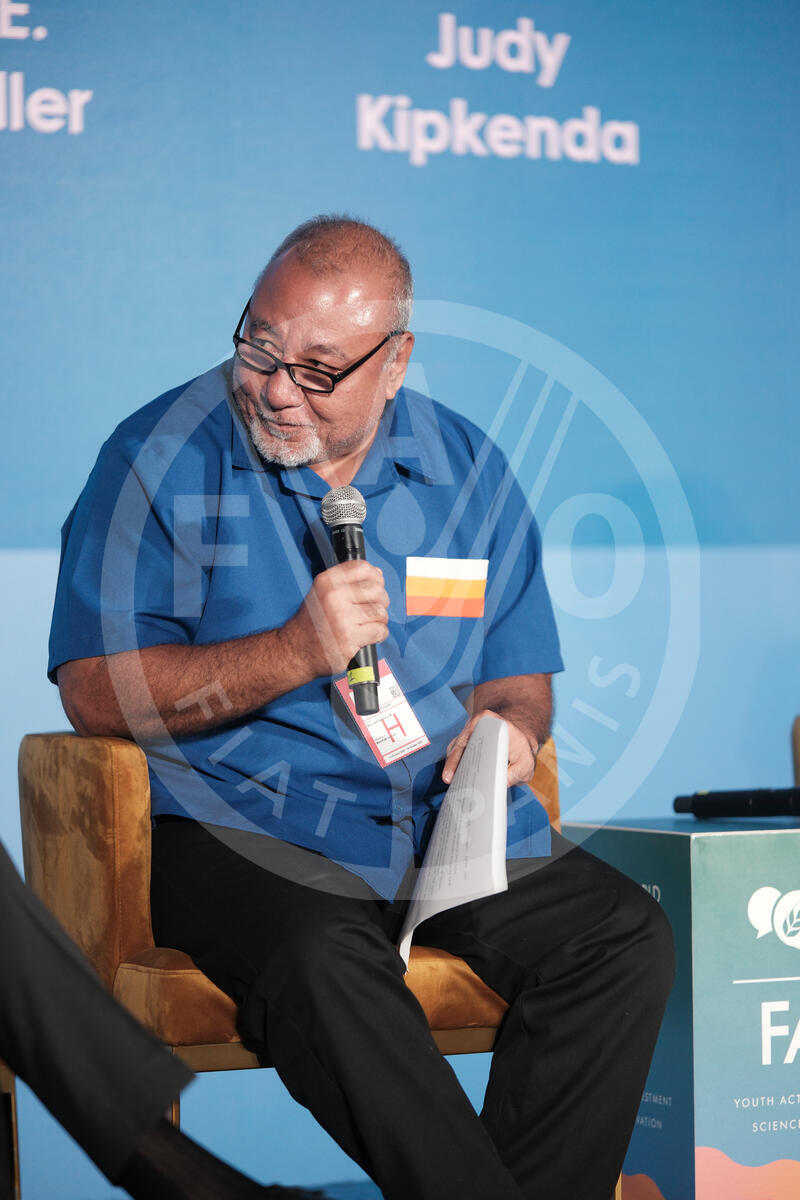 18 October 2024. Sheikh Zayed Centre, FAO Headquarters, Rome, Italy. Anthony Muller, Minister for Natural Resources and Commerce of the Marshall Islands, gives his speech at the Indigenous youth voices in the implementation of the UN Global Indigenous Youth Forum outcomes event.