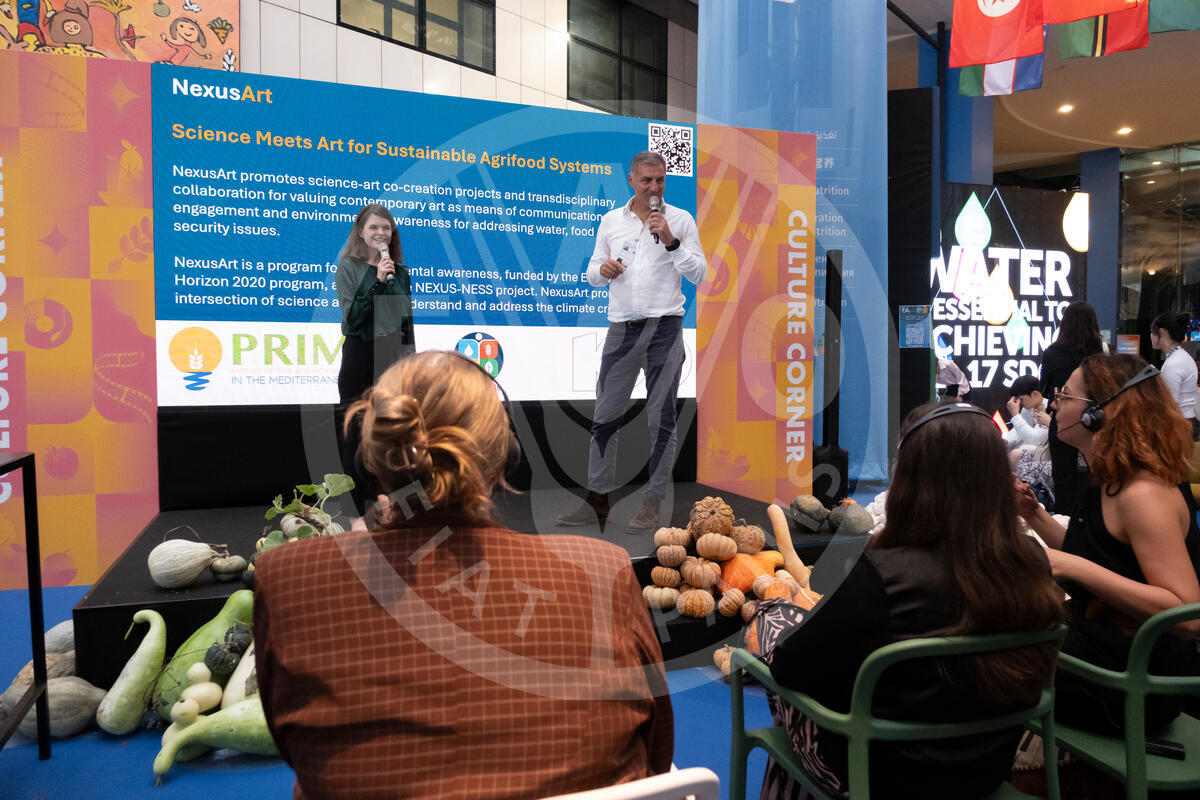 14 October 2024. Culture Corner, Atrium, FAO Headquarters, Rome, Italy. Fernando Nardi presents the NexusArt Award Ceremony. A competition for students from the Academy of Fine Arts in Rome.