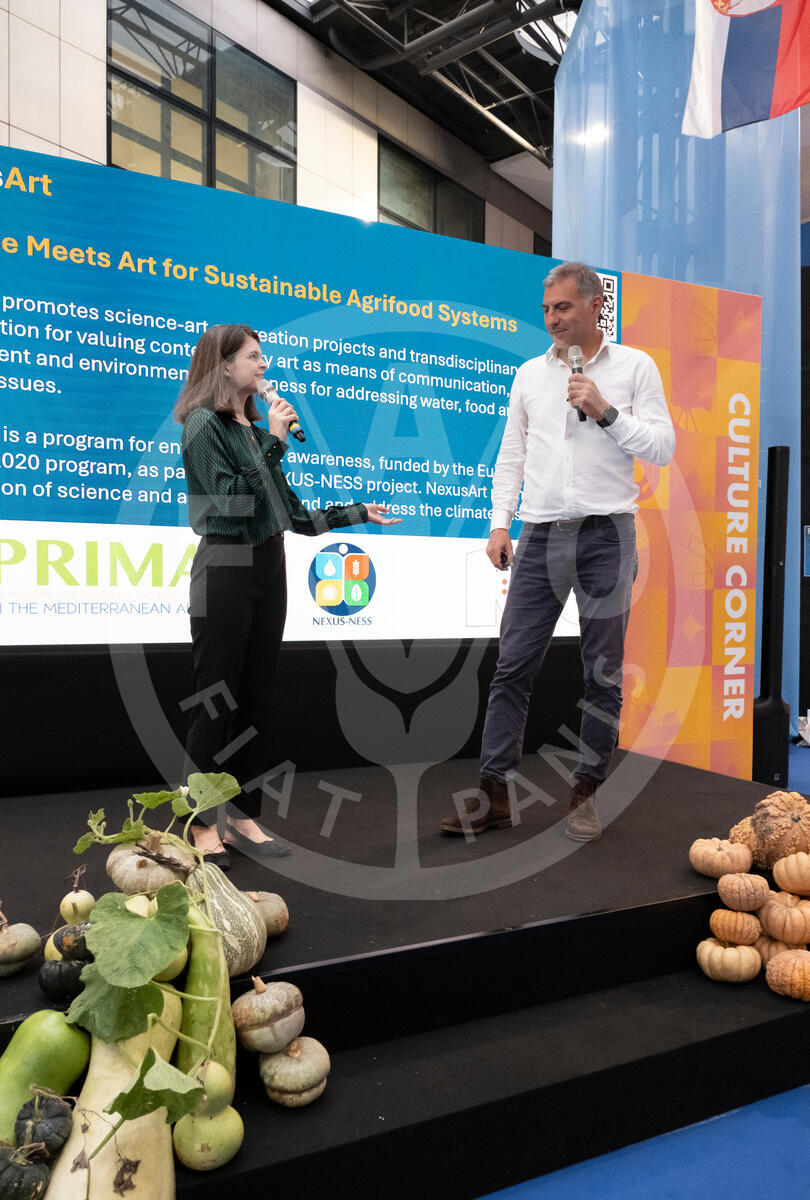 14 October 2024. Culture Corner, Atrium, FAO Headquarters, Rome, Italy. Fernando Nardi presents the NexusArt Award Ceremony. A competition for students from the Academy of Fine Arts in Rome.