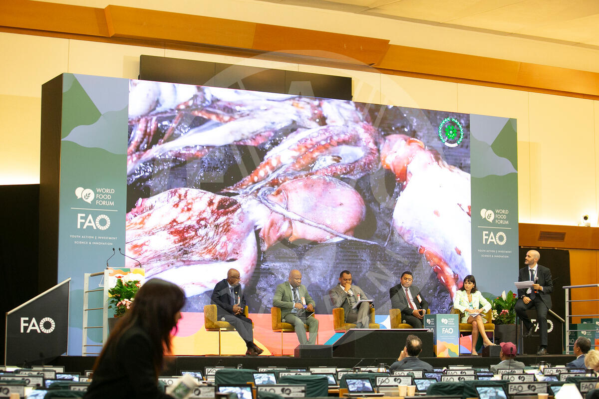 16 October 2024. Green Room, FAO Headquarters, Rome, Italy. View of the panelists of the Presentations of the Hand-in-Hand country investment plans (Madagascar and Comoros).