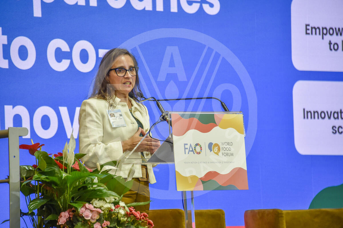 17 October 2024. Green Room, FAO Headquarters, Rome, Italy. Gabriela Quiroga Gilardoni, Senior International Development Expert, gives her speech at "Inclusive AI to drive agrifood systems transformation"