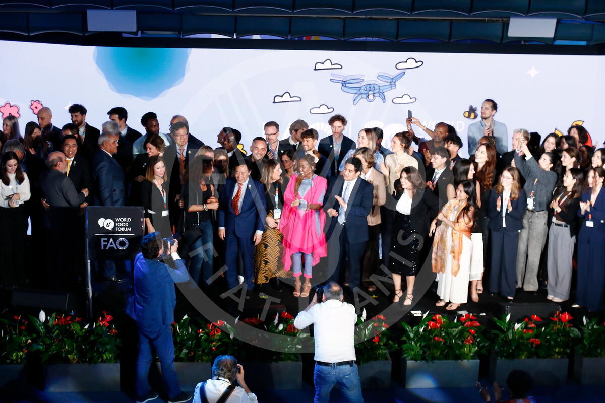 Delegates and participants take to the stage during the closing ceremony of the World Food Forum.