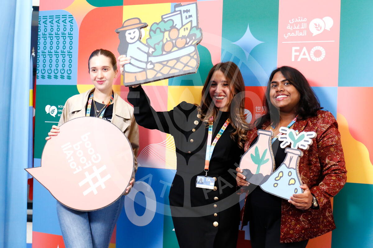 14 October 2024. Culture Corner, Atrium, FAO Headquarters, Rome, Italy. WFF 2024 Communication Team at the World Food Forum Exhibition Opening.
