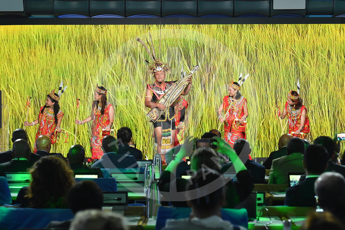 14 October 2024. Plenary Hall, FAO Headquarters, Rome, Italy. Indonesian Cultural Dance group performs at the World Food Forum Grand Opening.