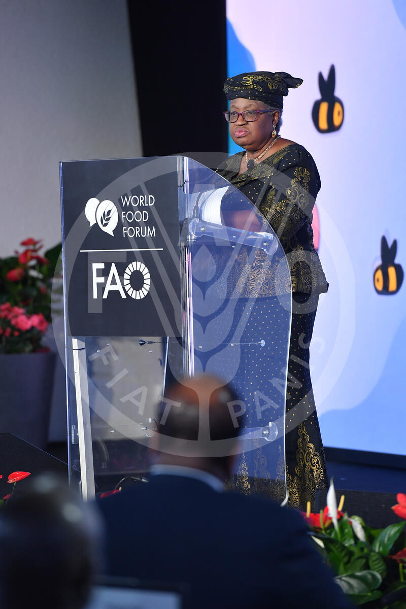 14 October 2024. Plenary Hall, FAO Headquarters, Rome, Italy. Ngozi Okonjo-Iweala, Director-General World Trade Organization (WTO), speaks at the World Food Forum Grand Opening.