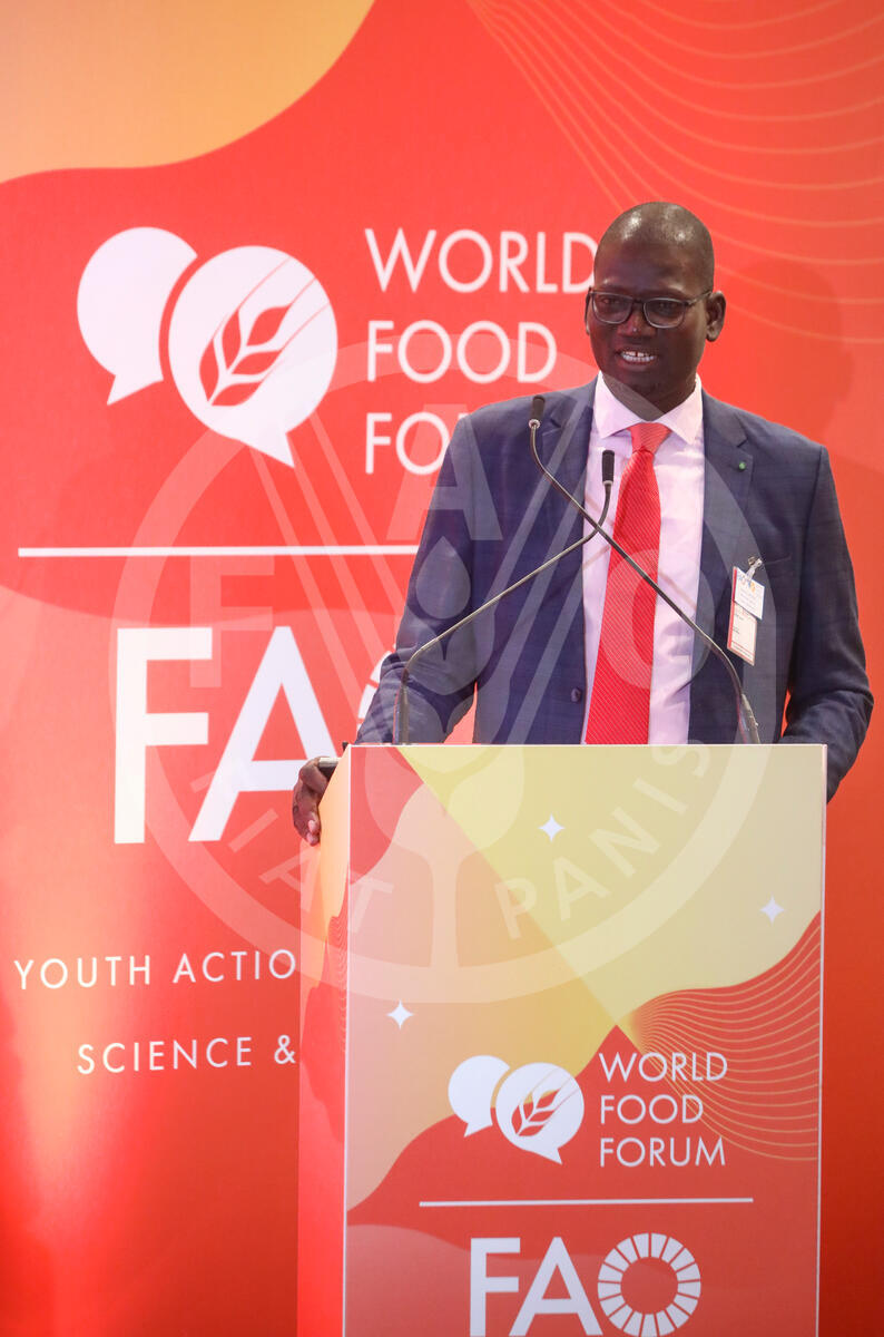 16 October 2024. Iran Room, FAO Headquarters, Rome, Italy. Adema Barry gives his speech at the Presentations of the Hand-in-Hand country investment plans event.
