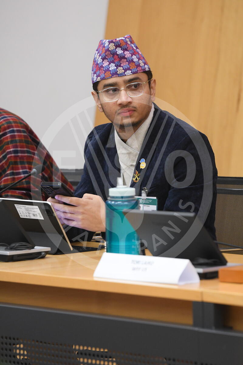17 October 2024. German Room, FAO Headquarters, Rome, Italy. Mr Ghanshyam Bhattarai, WFF Nepal Chapter, gives his speech at the World Food Forum Intercontinental Youth Dialogues on Food Security event.