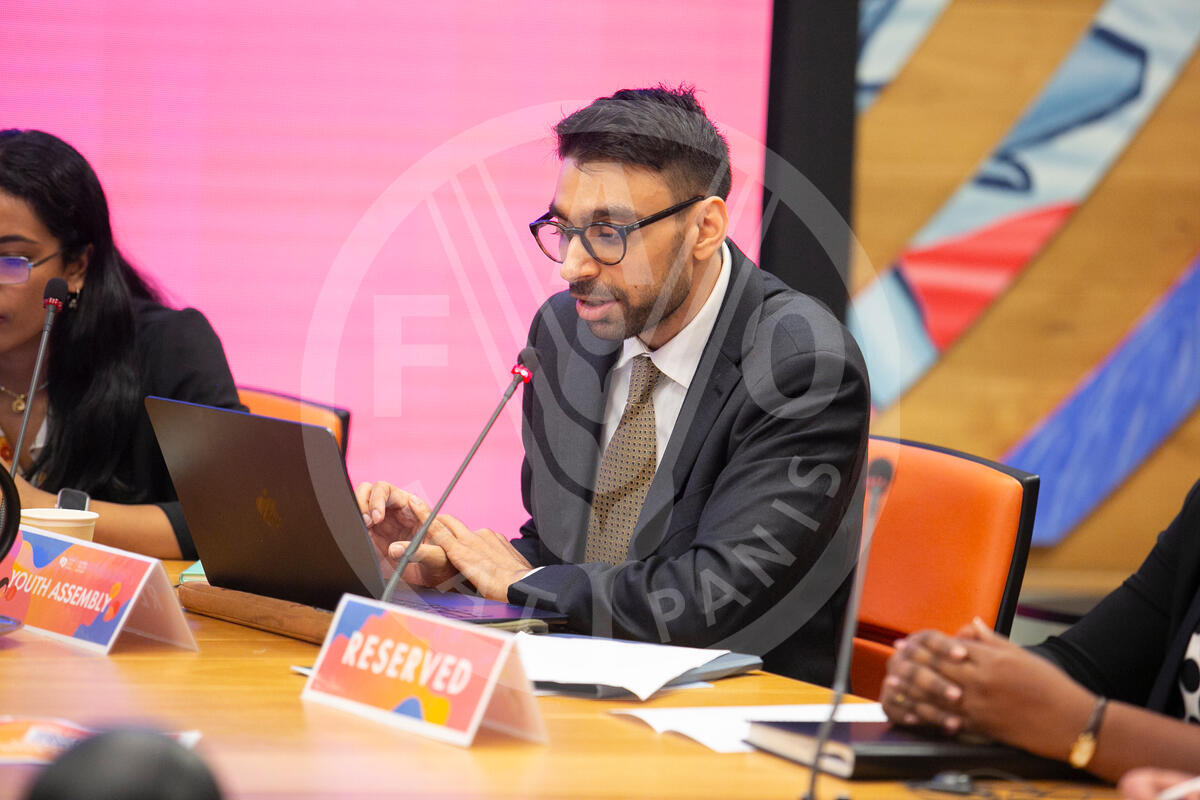 16 October 2024. Ethiopia Room, FAO Headquarters, Rome, Italy. View of the speakers and participants of the North America Regional Youth Assembly Workshop.