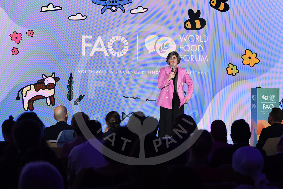 16 October 2024. Sheikh Zayed Centre, FAO Headquarters, Rome, Italy. Beth Bechdol, Deputy Director-General Food and Agriculture Organization of the United Nations (FAO), gives her speech at the Startup Innovation Awards.