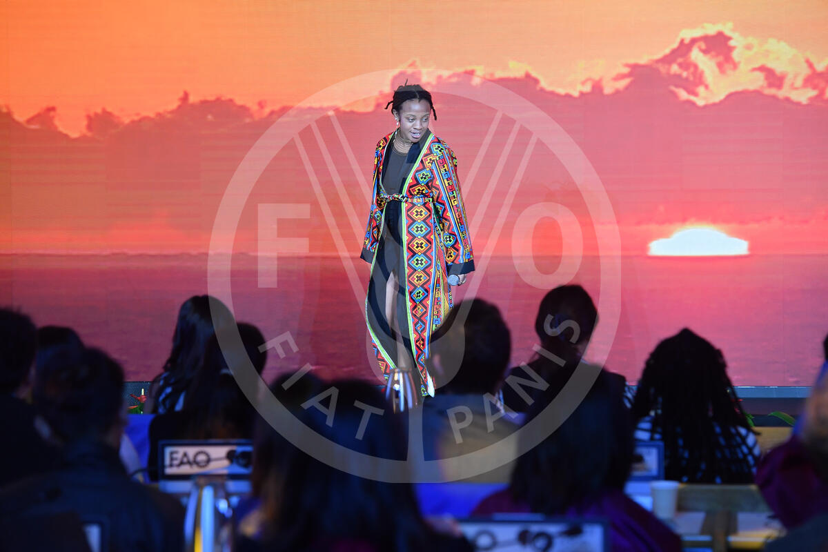 14 October 2024. Plenary Hall, FAO Headquarters, Rome, Italy. Mpiwa Gwindi sings the 2023 World Food Forum anthem 'Together' at the Youth Assembly Opening Ceremony.