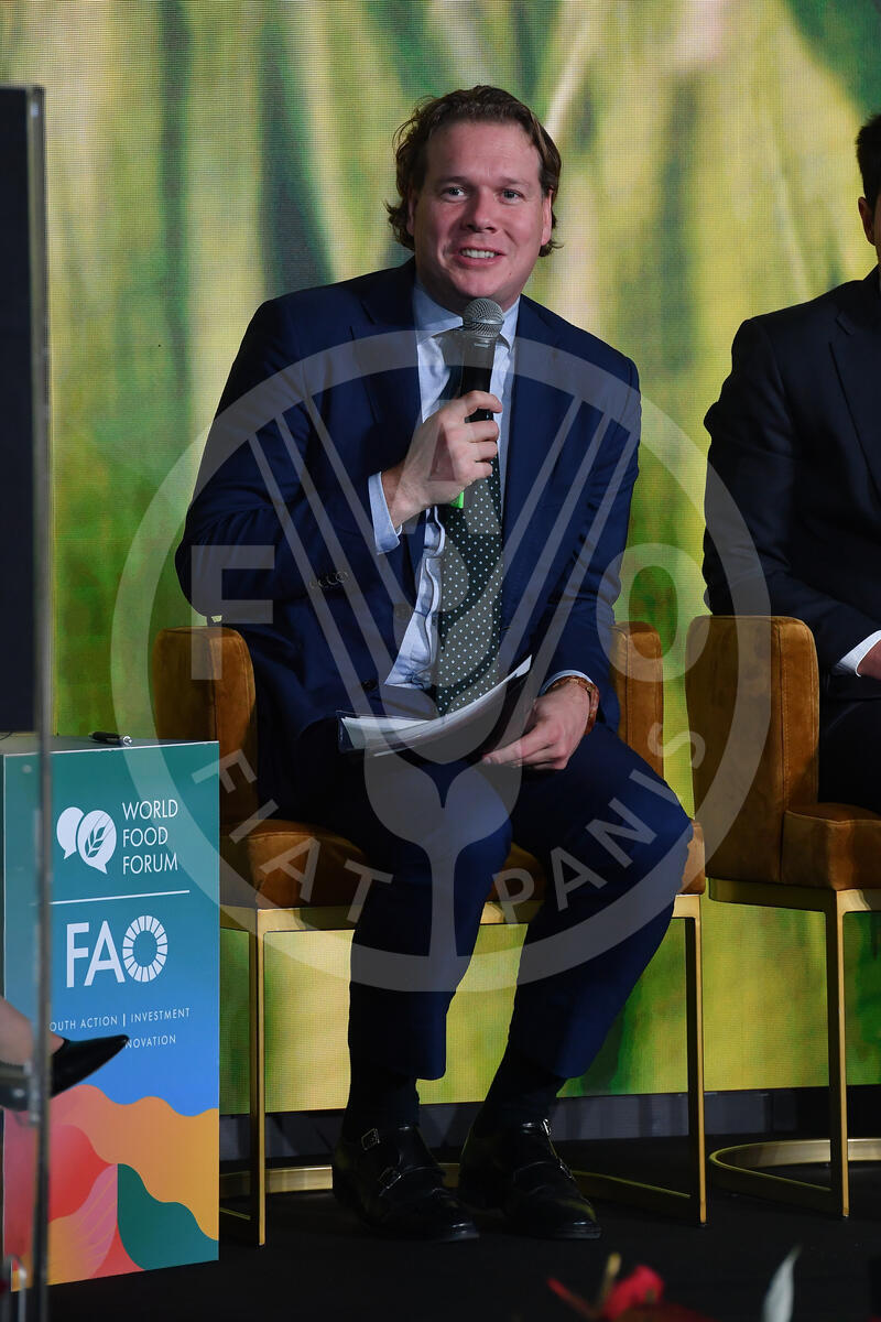 14 October 2024. Plenary Hall, FAO Headquarters, Rome, Italy. Jurriaan Middelhoff, Dutch Ambassador for Youth, Education and Work, addresses the World Food Forum Youth Assembly Opening Ceremony.