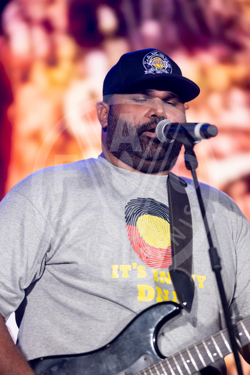 14 October 2024. Sheikh Zayed Centre, FAO Headquarters, Rome, Italy. The Australian band Family Shoveller performs with traditional Australian instruments at the WFF Youth Concert.