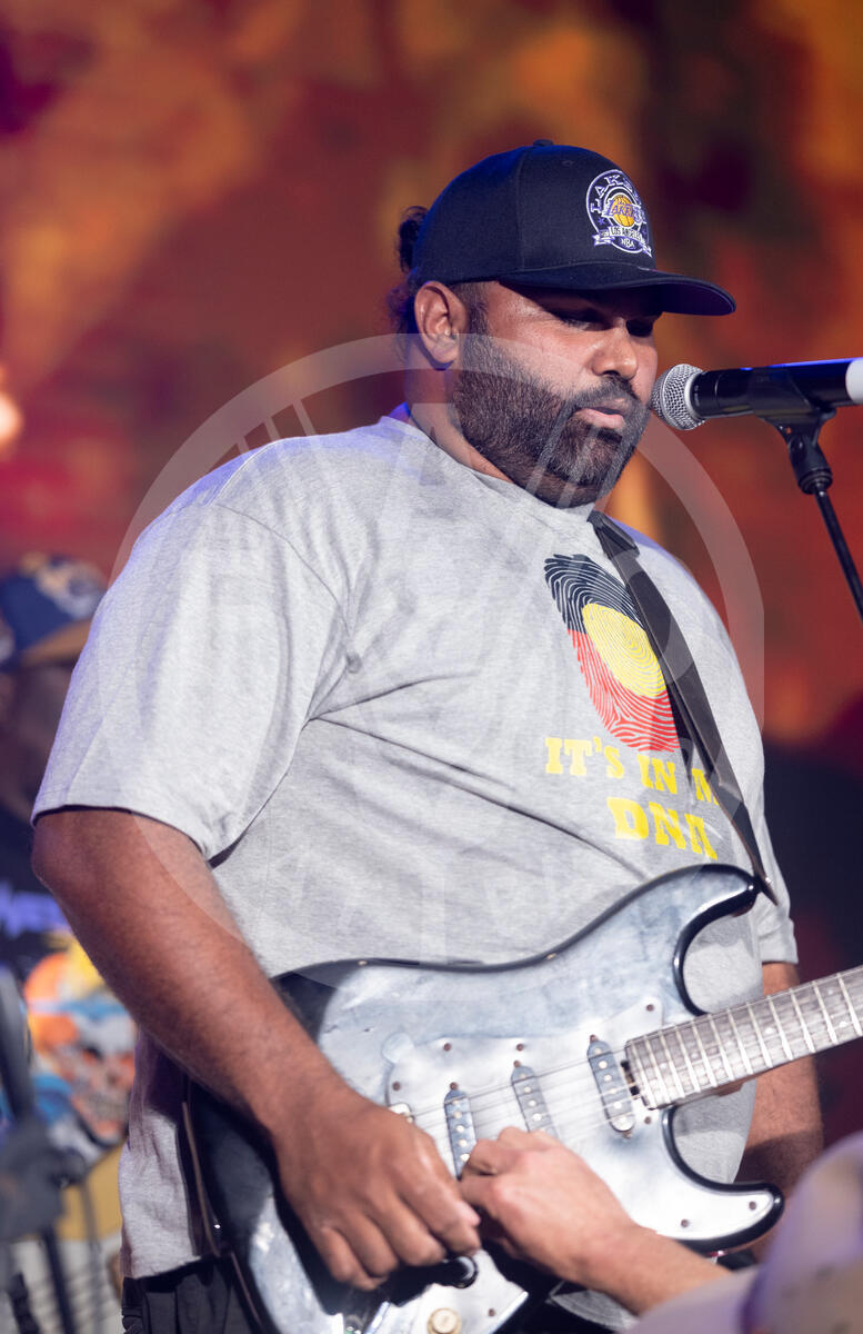 14 October 2024. Sheikh Zayed Centre, FAO Headquarters, Rome, Italy. The Australian band Family Shoveller performs with traditional Australian instruments at the WFF Youth Concert.