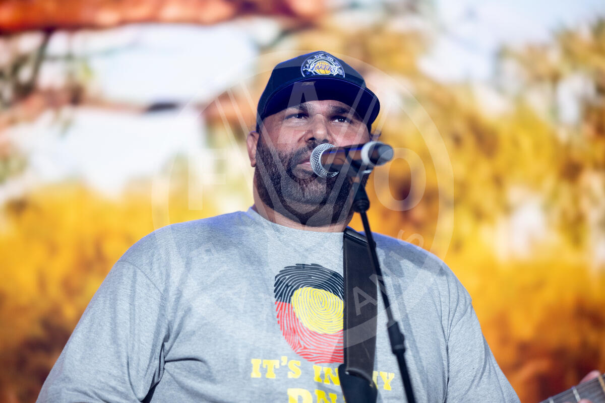 14 October 2024. Sheikh Zayed Centre, FAO Headquarters, Rome, Italy. The Australian band Family Shoveller performs with traditional Australian instruments at the WFF Youth Concert.