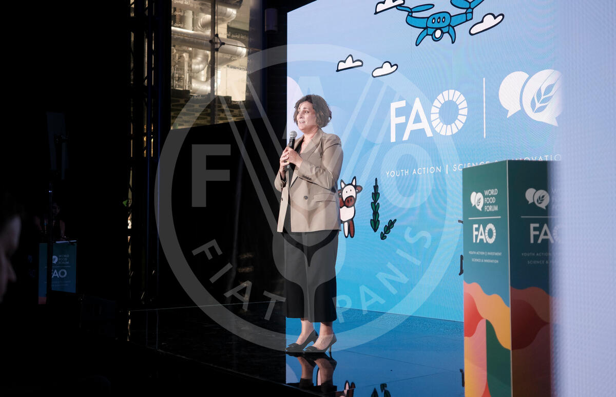 17 October 2024. Sheikh Zayed Centre, FAO Headquarters, Rome, Italy. Beth Bechdol, Deputy Director-General at the Food and Agriculture Organization of the United Nations, gives her speech at the Youth Food Lab event.