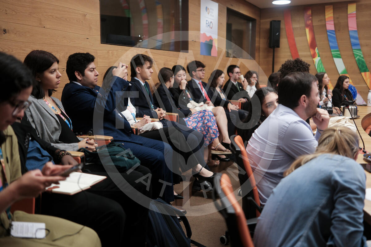 15 October 2024. Ethiopia Room, FAO Headquarters, Rome, Italy. In the Latin America and Caribbean Panel (Youth Policy Board) the discussion focuses on engaging young leaders, politicians, representatives of the private sector and civil society in the region to promote an inclusive and innovative dialogue. The main objective of the Panel is to facilitate the development of integrated policies that address the social, economic and environmental challenges in the region, with a specific focus on youth involvement.
