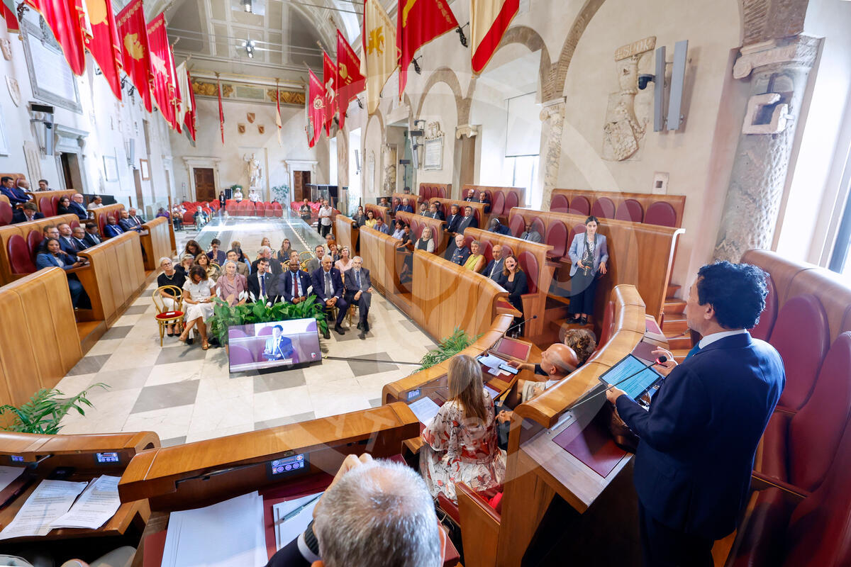 23 July 2025, Rome, Italy. FAO Director-General QU Dongyu, (R) delivers his address during the official launch ceremony of the joint FAO-Roma Capitale campaign “Together for Food Education in Rome's Schools”, at the “Sala della Lupa” in Rome’s Campidoglio.