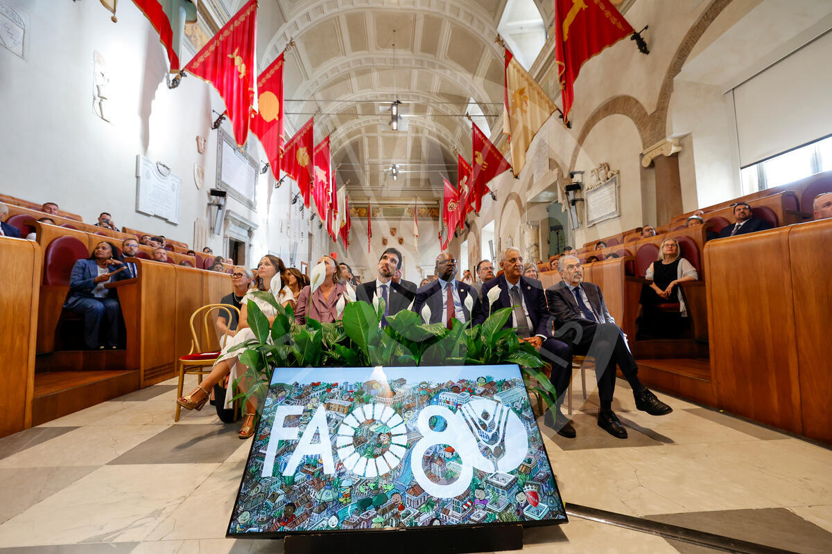 3 July 2025, Rome, Italy. FAO staff listen to FAO Director-General QU Donggyu delivering his address during the official launch ceremony of the joint FAO-Roma Capitale campaign “Together for Food Education in Rome's Schools”, at the “Sala della Lupa” in Rome’s Campidoglio.