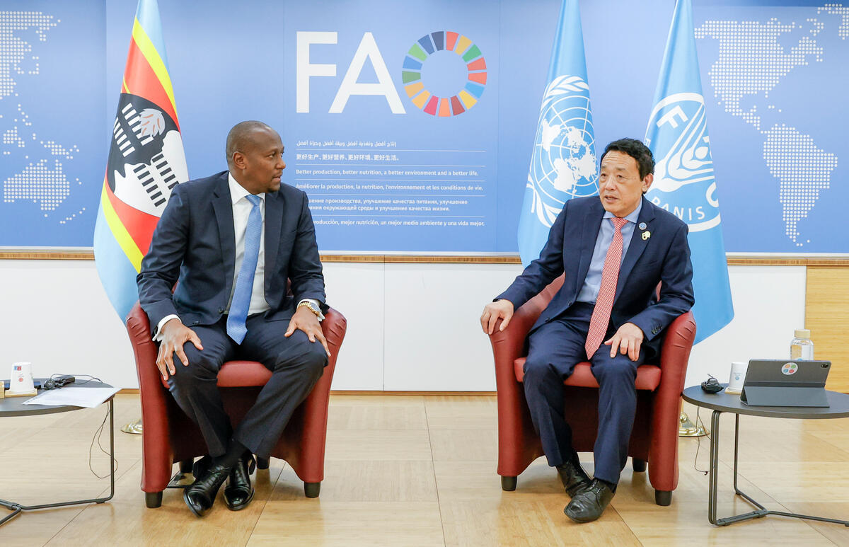 14 October 2025, Rome, Italy, FAO Director-General QU Dongyu meeting Eswatini Prime Minister Russell Mmiso Dlamini, FAO Headquarters, (Iraq Room).