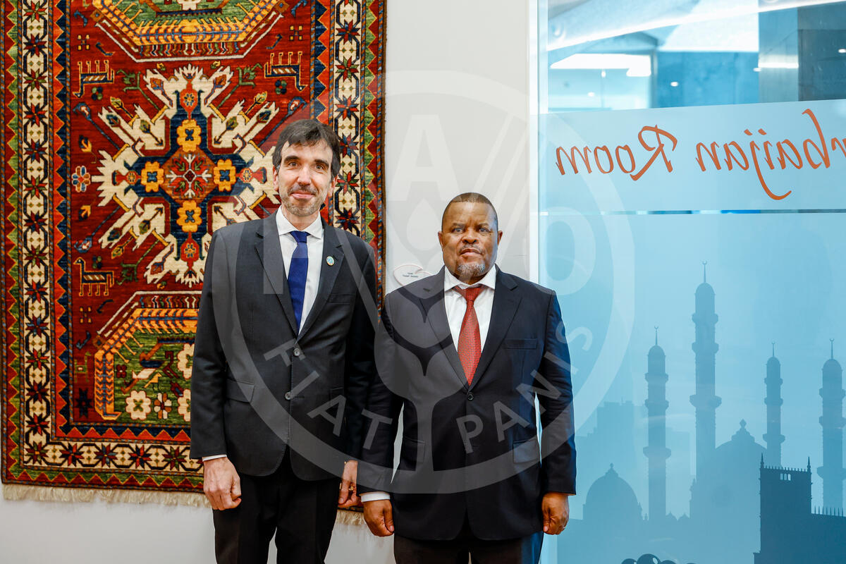 02 July 2025. Rome, Italy. Maurizio Martina (L), FAO Deputy Director-General meets Roberto Albino Mito, Minister for Agriculture, Environment, and Fisheries of the Republic of Mozambique. FAO headquarters, (Azerbaijan room).
