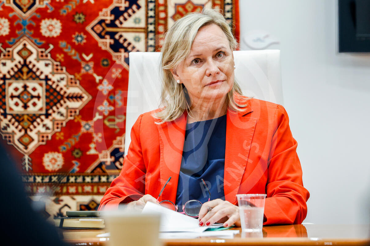 02 July 2025. Rome, Italy. Malgorzata (Margo) Buszko-Briggs, Senior Forestry Officer and Team Leader of the Forestry Division FAO, participates in the meeting between Maurizio Martina, FAO Deputy Director-General, and Roberto Albino Mito, Minister of Agriculture, Environment and Fisheries of the Republic of Mozambique. FAO Headquarters (Azerbaijan Room).