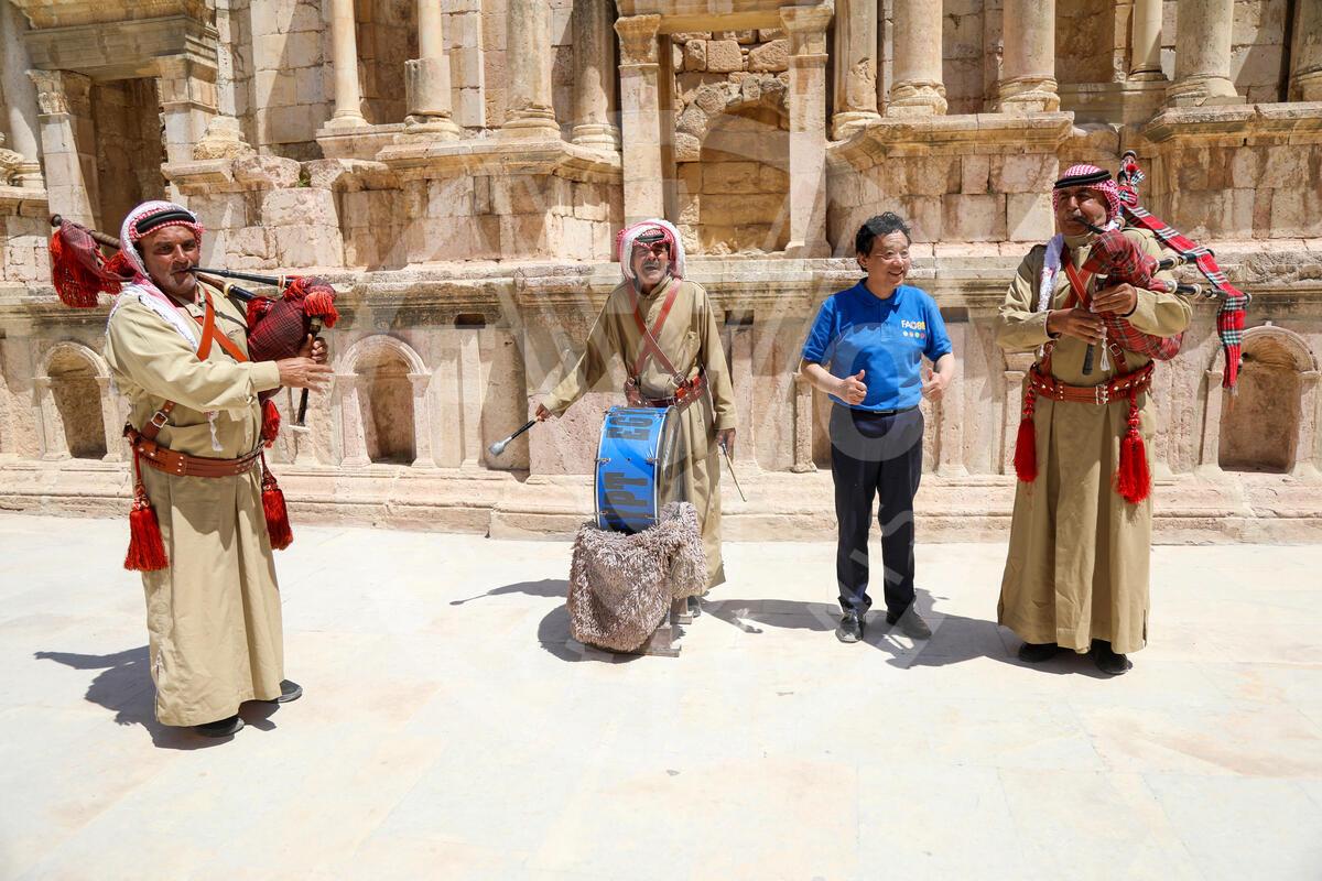 05 June 2025, Amman, Jordan. FAO Director-General QU Dongyu visits the ancient Roman city of Jerash, to explore the well-preserved monuments and Jordan’s rich cultural heritage.