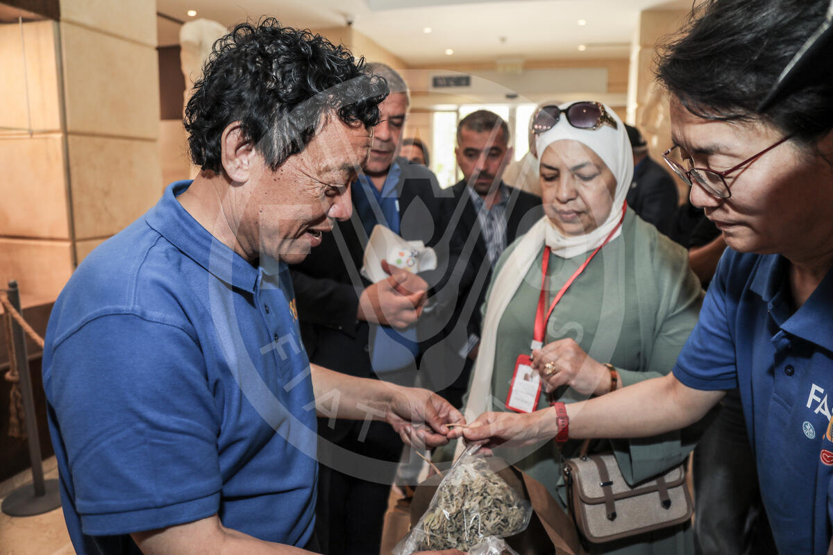 05 June 2025, Amman, Jordan. FAO Director-General QU Dongyu (L) and FAO team visit the FAO supported Darb AlNoor Association in Jerash, where rural women are empowered through beekeeping, honey processing & business training.