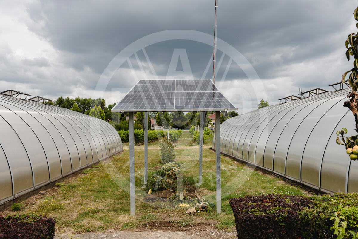 28 July 2025, Valjevo, Republic of Serbia Solar panel in the garden of the Agricultural school.