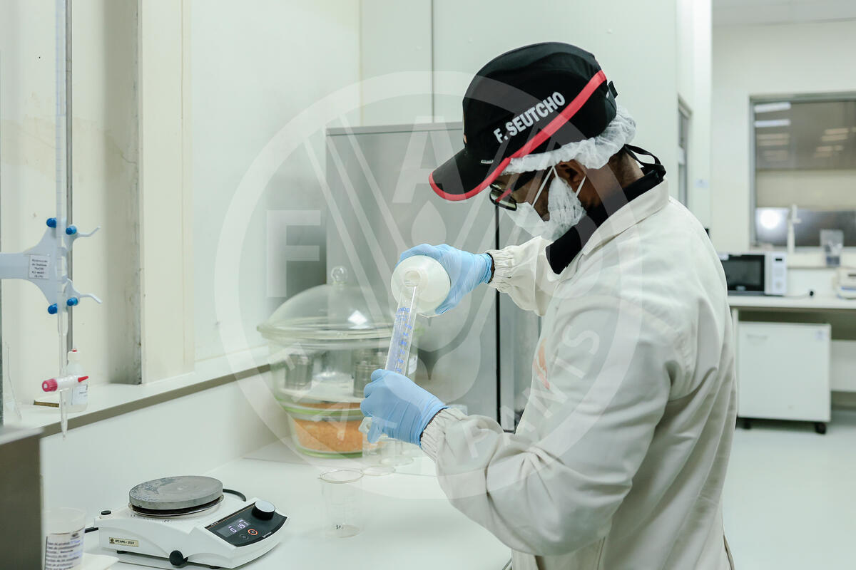 21 August 2025. NEO Industry SA, Kekem. Laboratory technician testing cocoa.