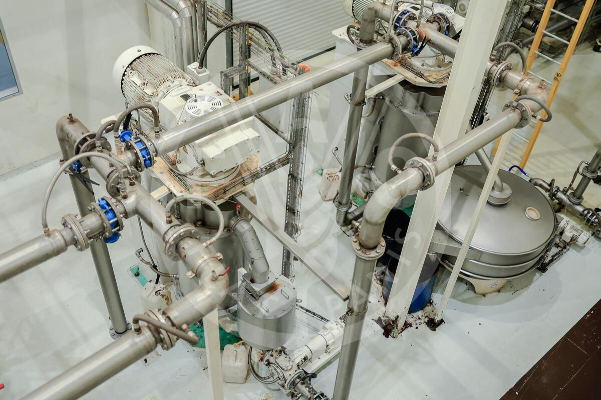21 August 2025. NEO Industry SA, Kekem. Cocoa factory machinery and interconnected pipes.