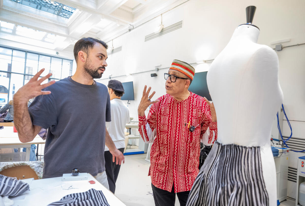 29 September 2025, Rome, Italy - Alphadi interacting with students of the Accademia. Designer Alphadi visiting 'Accademia Costume & Moda', Roma.