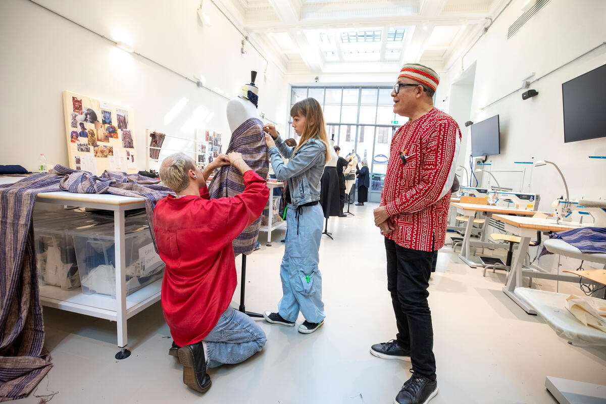 29 September 2025, Rome, Italy - Alphadi interacting with students of the Accademia. Designer Alphadi visiting 'Accademia Costume & Moda', Roma.