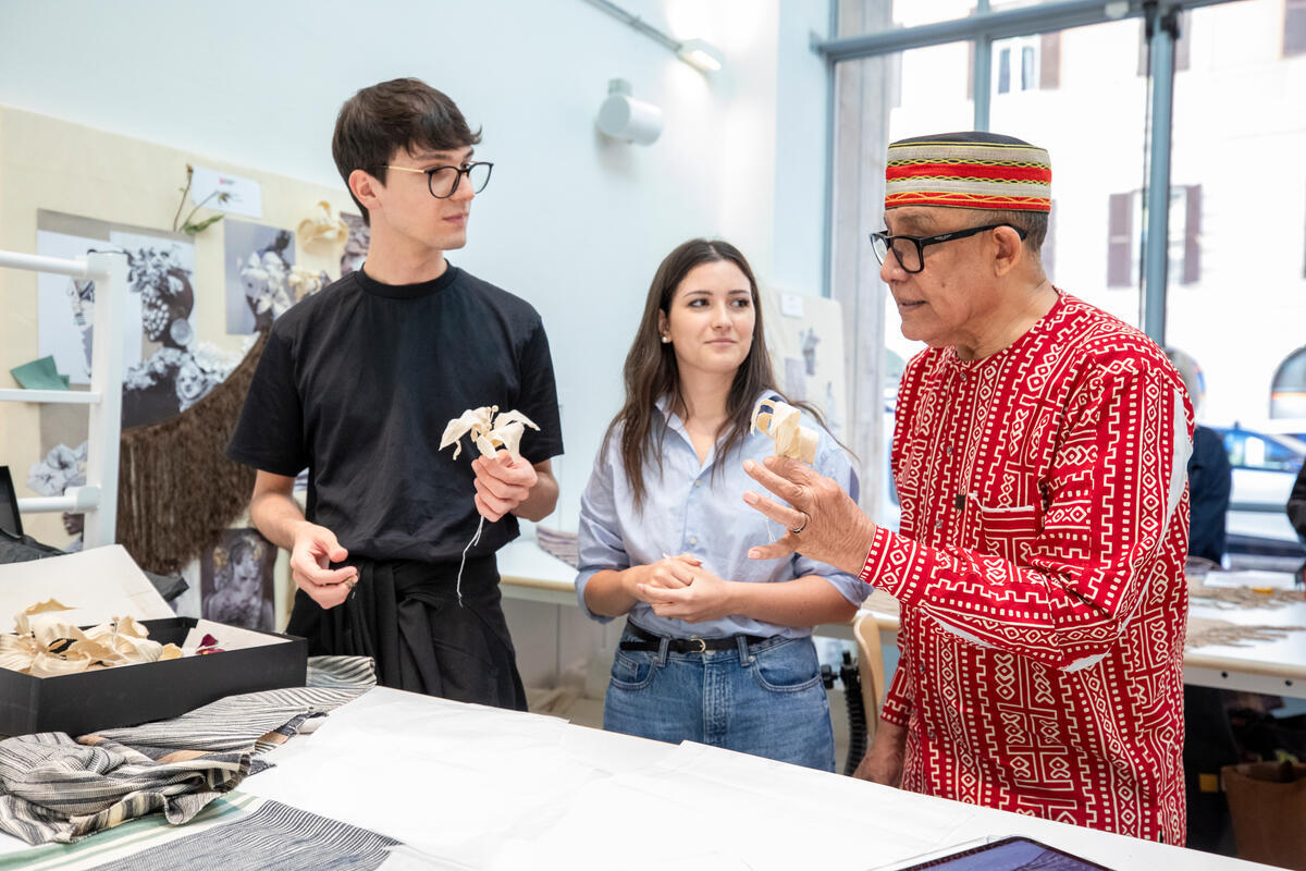 29 September 2025, Rome, Italy - Alphadi interacting with students of the Accademia. Designer Alphadi visiting 'Accademia Costume & Moda', Roma.